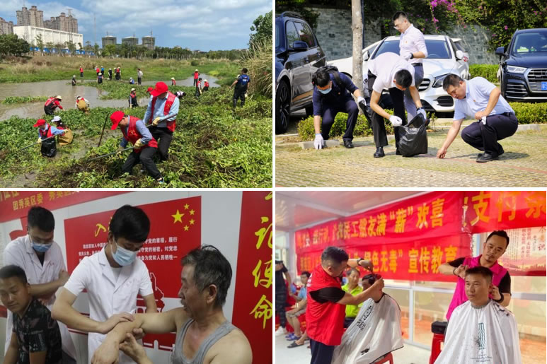 中免(海口)投资公司党支部聚焦服务工程建设、丰富企业文化、践行社会责任等方面把实事办实办好。为海口国际免税城项目员工“送清凉”,购置了防暑防晒物资,备好冰镇绿豆汤,不定期推出“惊喜菜”。精心打造“党史文化墙”,设立“图书角”,开展“微课堂”读书活动,为员工订阅报纸期刊,开展职工趣味运动会、友谊篮球赛,全面更新公司形象展示标识和宣传栏,设置新人榜,不断打造企业文化新亮点。党支部联合当地工会、共青团等机构共同开展环保志愿活动和公益普法活动,提供免费体检、义剪服务,以实际行动关爱自贸港基层建设者,彰显央企风范。