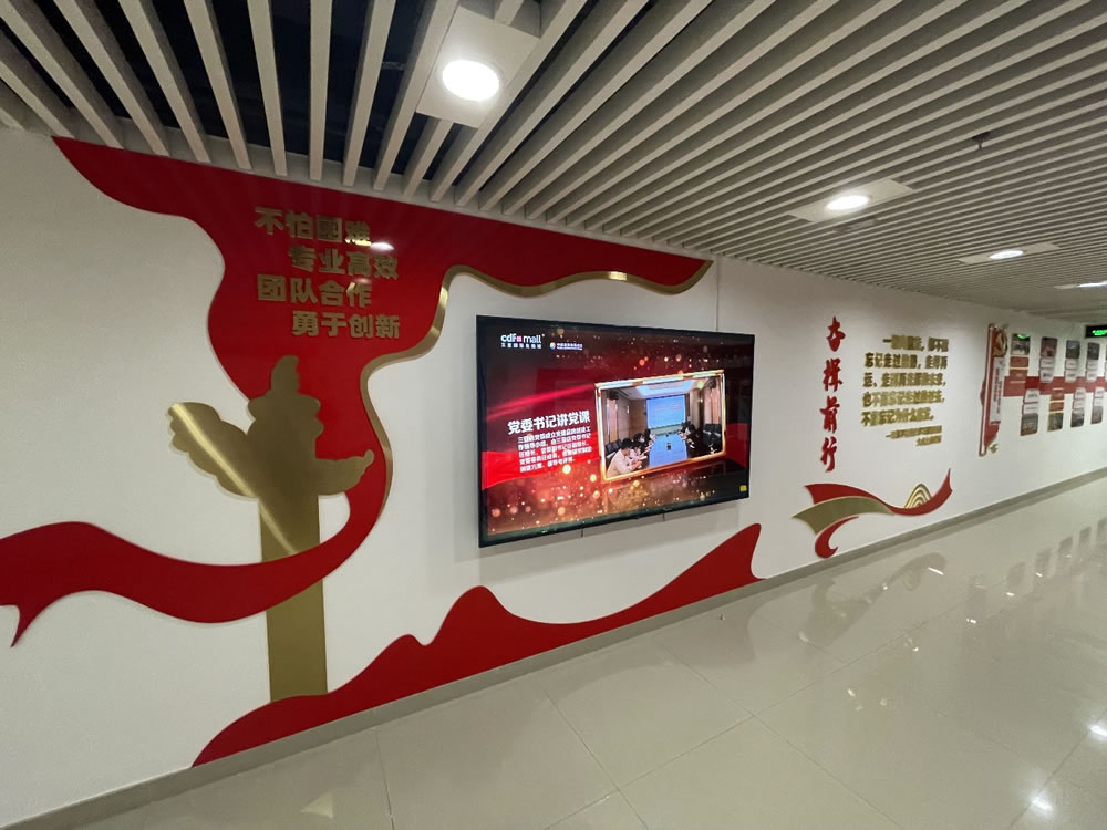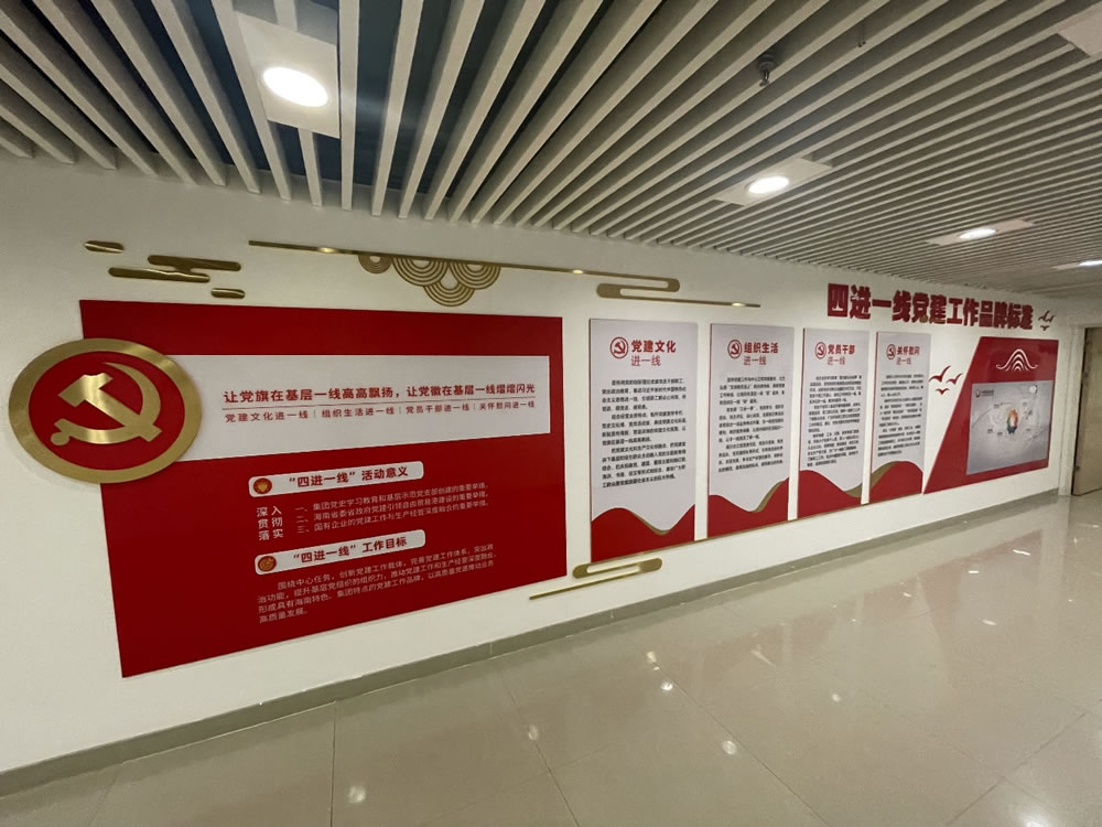 该长廊全长近125米,分为“初心使命”“奋辑前行”“党建领航”“践行承诺”四个篇章,涵盖了习总书记重要讲话精神摘录、企业发展历程、历史成绩、党组织概况及组织架构、“我为群众办实事”实践活动开展情况、精准扶贫、党风廉政建设、防范走私套代购专项工作、党建品牌创建要点、支部特色工作法、“两优一先”荣誉展示、党建活动剪影、党务公开栏、集团党建示范经验推广展示等十多个大类的内容,采用了传统图文并茂与视听互动相结合的形式,专门设置了3处电子显示屏,循环播放各类影像素材,全景展现了三亚店多年来坚持“听党话、跟党走”不动摇的责任担当和广大党员干部员工不怕困难、勇于创新的奋斗精神。
