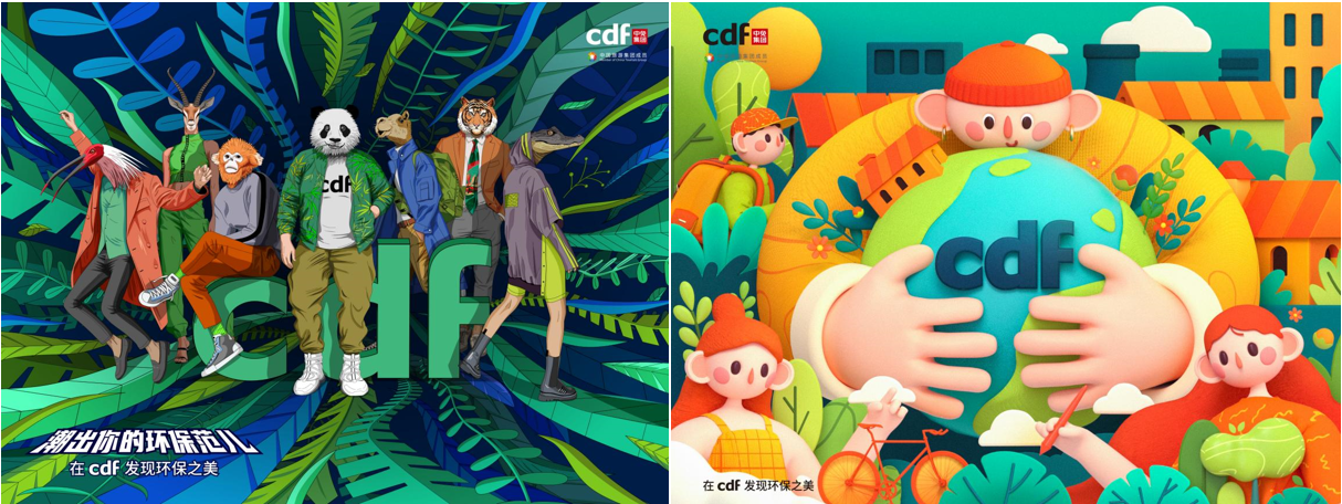 为呼吁更多的消费者关注生态环保,倡导绿色消费,中免集团发起了“在 cdf 发现环保之美”环保公益海报设计大赛,向大众征集以“潮出你的环保范儿”为主题的环保公益海报作品,在环保的主题下与大众互动创作出富有潮流感、时尚感的环保公益海报。 历时30天的赛事征集到1720幅作品,累计互动频次达93万+ 。用视觉艺术塑造环保之美,异彩纷呈的审美创意、元素碰撞透过一幅幅参与者提交的海报诠释着大众环保意识的觉醒,传递着绿色发展的美好愿望,也呼吁着更多人关注生态环境,身体力行投入到生态建设中来。